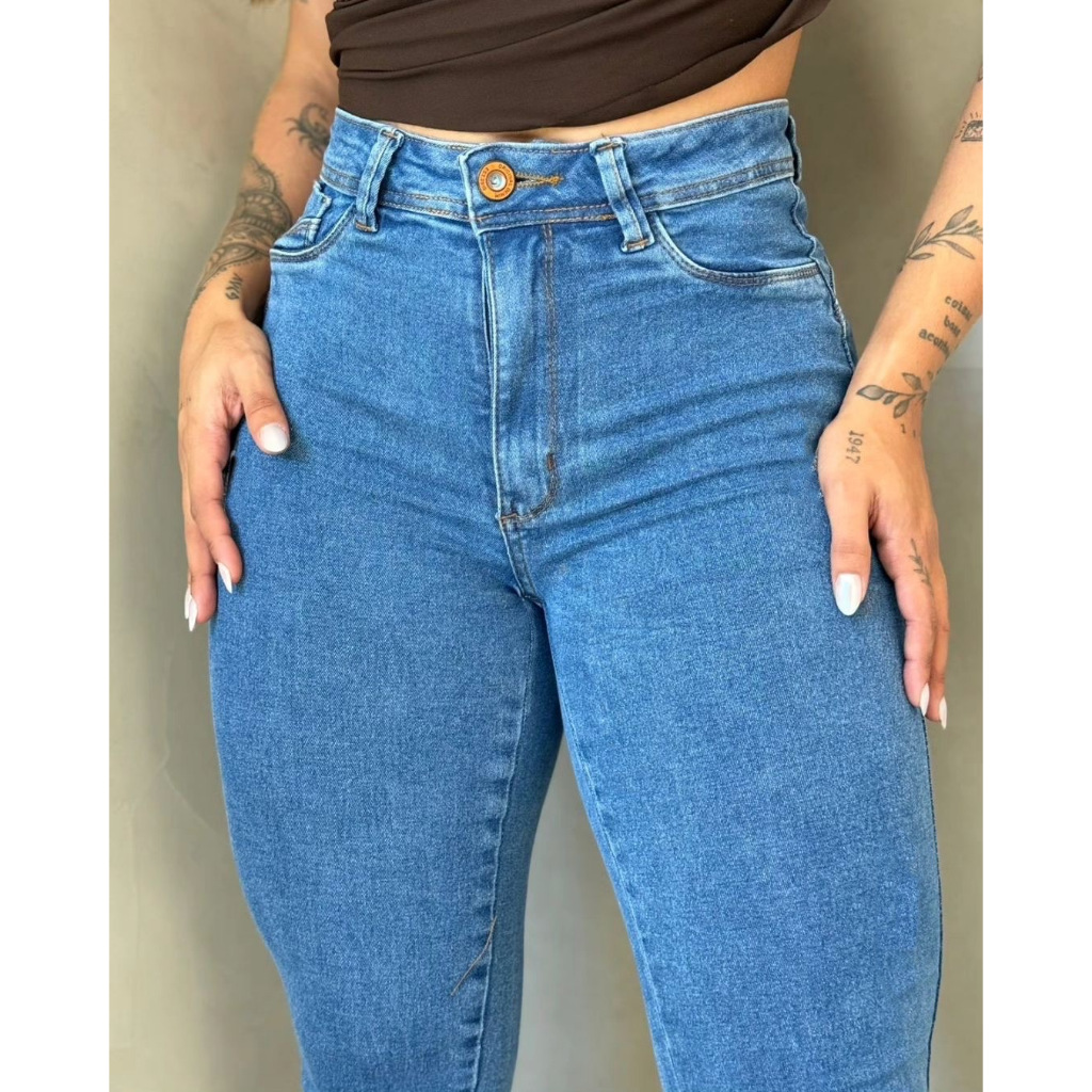 Calça Skinny Jeans Azul Básica Com Lycra Cintura Alta Corte Empina Bumbum.