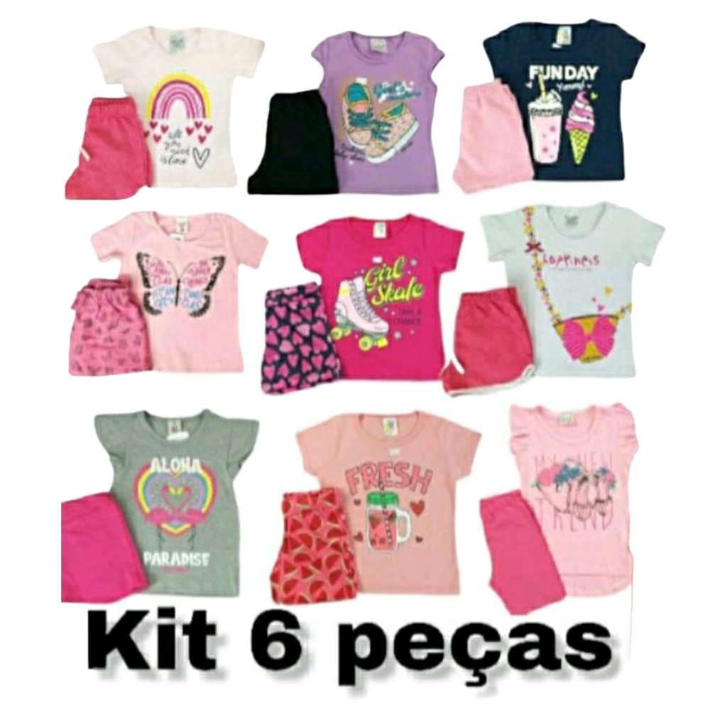 Lote 6 Peças Infantil Menina 1 a 16 Conjunto Juvenil Feminino Roupa Infantil Menina