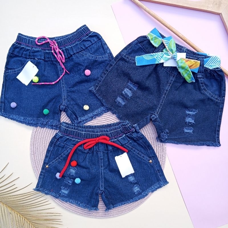Short Jeans Bebê Menina infantil pom pom Blogueirinha P M e G veste de 0 à 6 anos /Roupa Infantil Menina