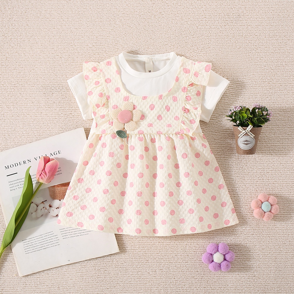 Vestido De Verão Novo Estilo Simples Para Menina De Manga Curta , Roupa Infantil Polka Dot (6 Meses-2 Anos)