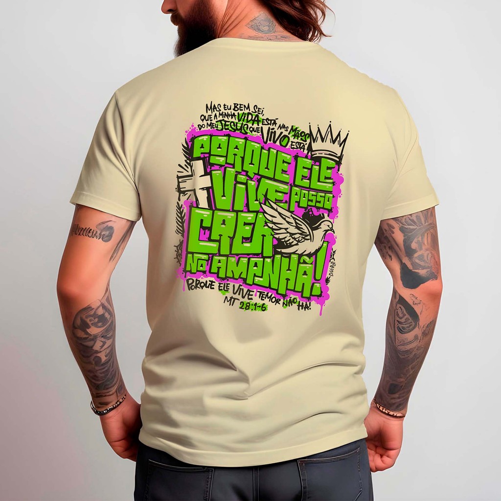 Camiseta Masculina Jesus Ele Vive T-Shirt Street Wear Camisa Manfinity 100% Algodão
