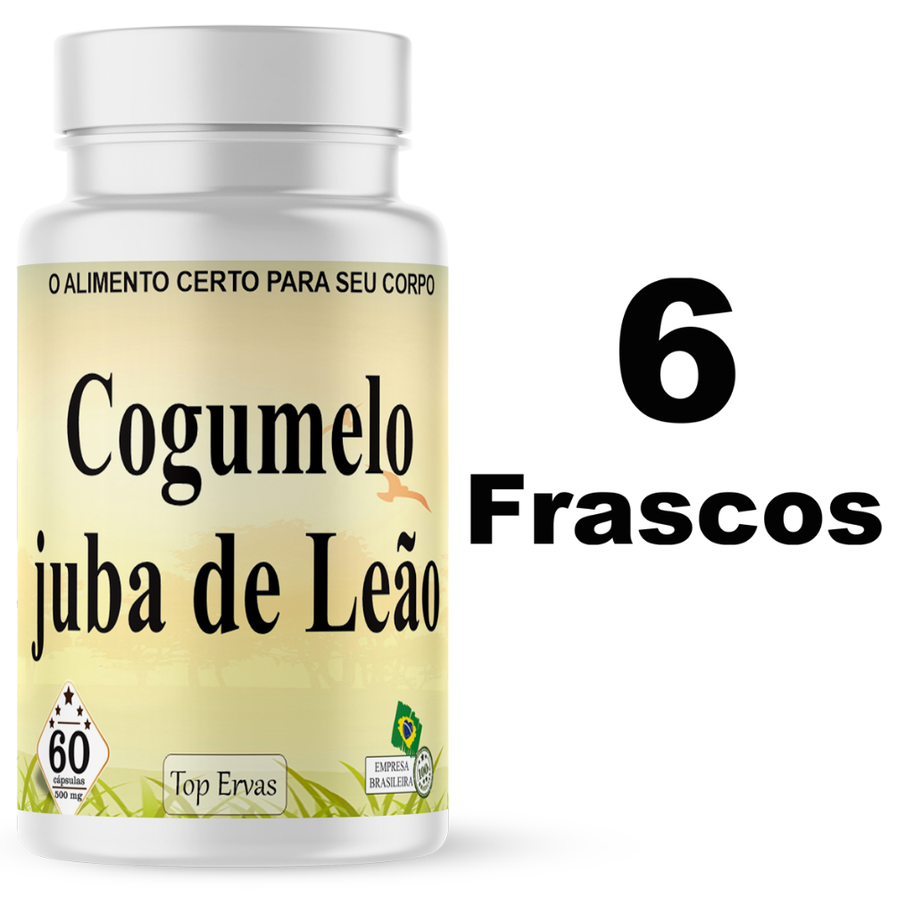 Cogumelo Juba de Leão ( Cogumelo-Coral ) kit 6 Potes 360 Capsulas