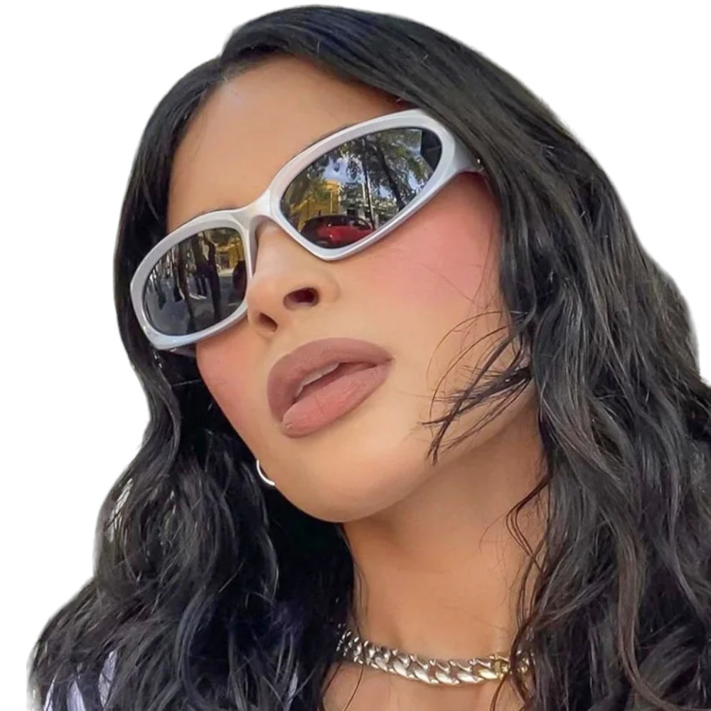 Óculos De Sol Y2K Femininos Lady Trendy Big Frame Vintage Wrap Around Sun Glasses Moda Futurista Punk Silver Shades 2000s