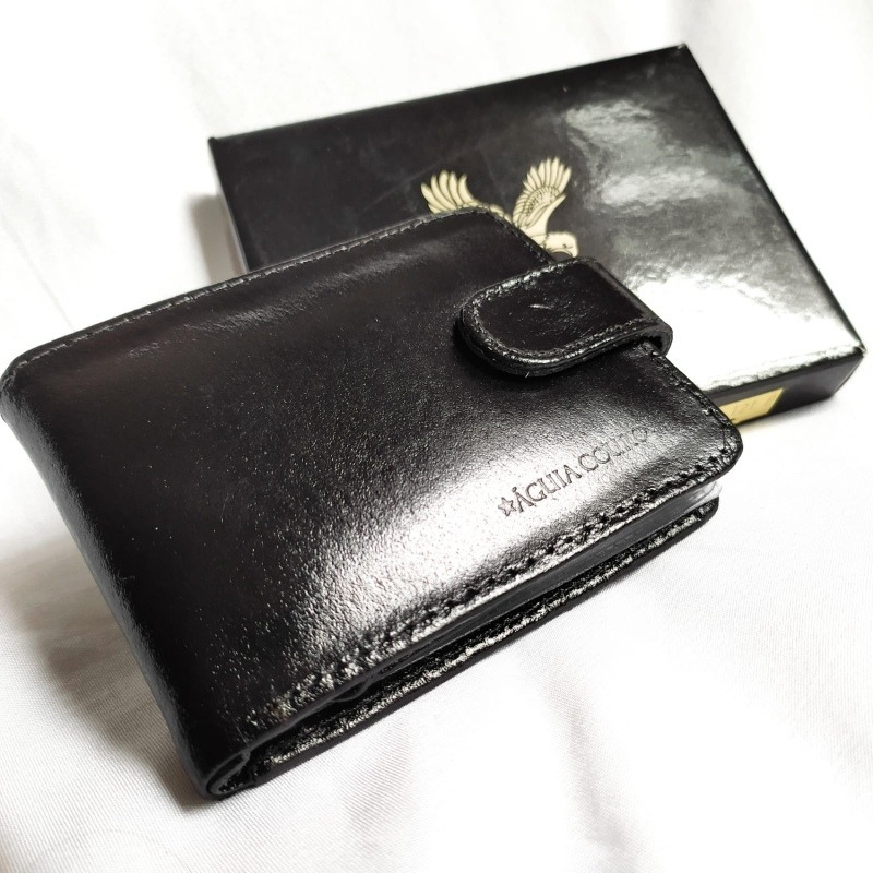 Carteira Masculina Em Couro Legítimo Com fecho de pressão + porta Cartão Completa
