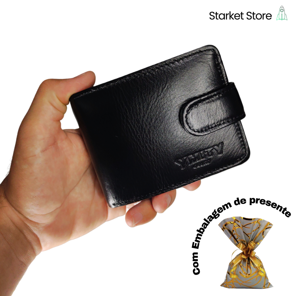Carteira Masculina Ymity Original Couro 100% Legítimo Bovino Premium com Fecho de Pressão e Porta Moedas