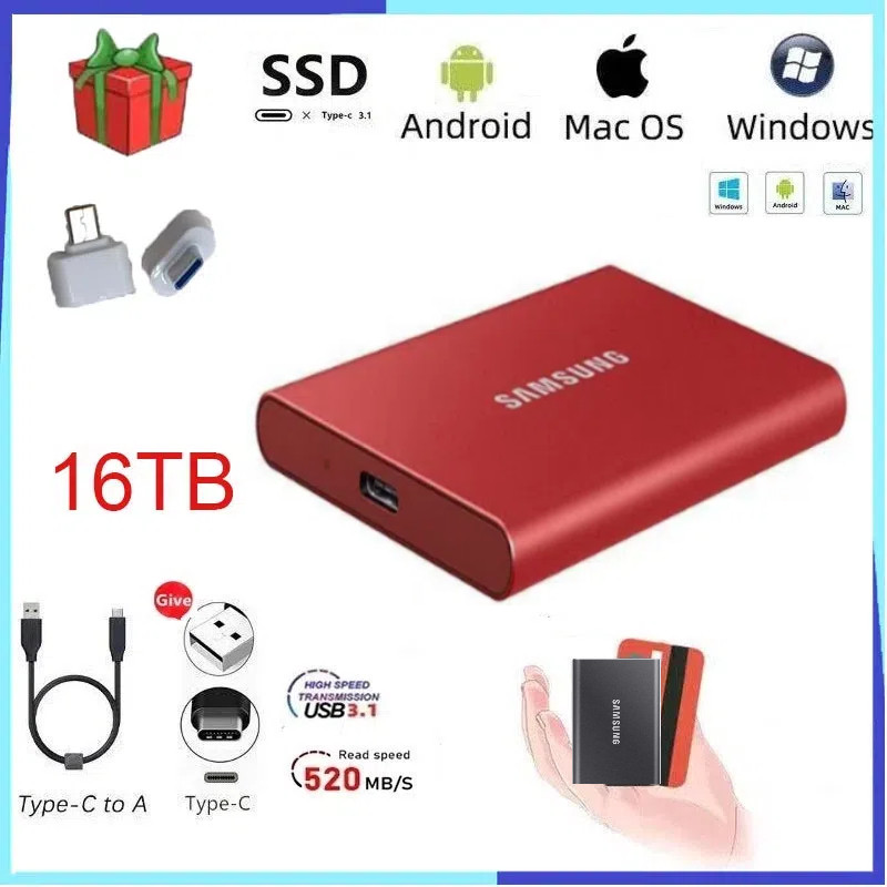 ⚡️ Samsung-Disco Rígido Externo HD 128TB/60TB SSD 30TB USB3.1-Type C De Expansão 16TB/8TB/4TB 1TB/2TB