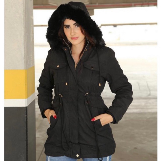 Casaco Parka Jaqueta Sobretudo Feminino Forro Pelinhos Capuz Inverno