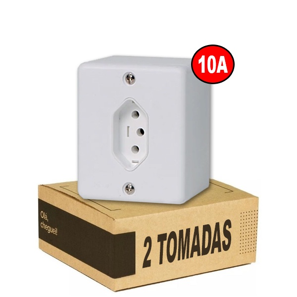 Kit 10 Tomada dupla 10A 2P+T 250V Sobrepor Fixação por sistema X