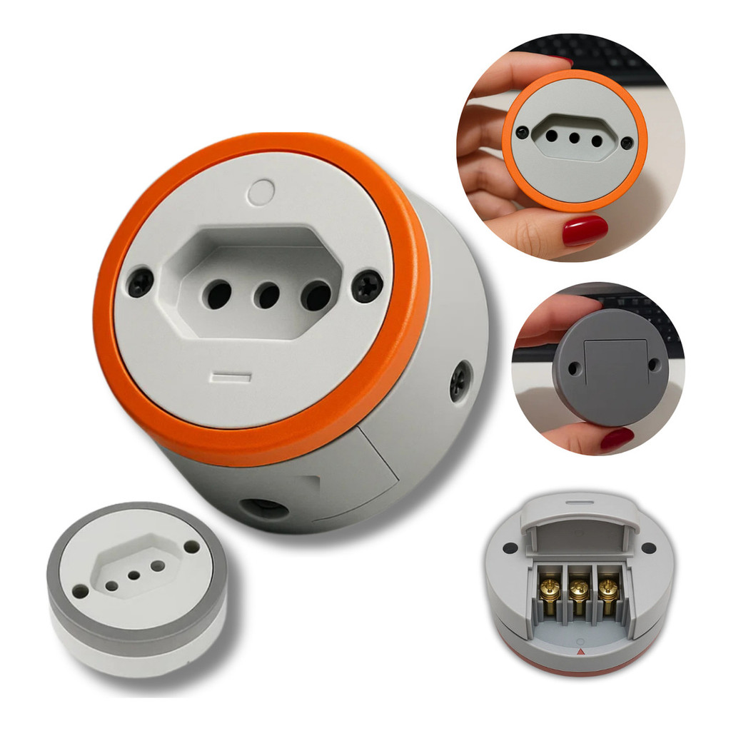 Kit 5 Tomada Externa Redonda Sobrepor NBR 2P+T 10A 250V Branco Antigo Padrão Bivolt 127/220 Elétrica