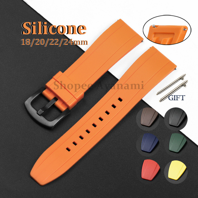 20mm 22mm 24mm Lançamento Rápido Alça De Silicone Esportiva Homens Mulheres Pulseira De Mergulho À Prova D'água Borracha Plana Cabeça Universal