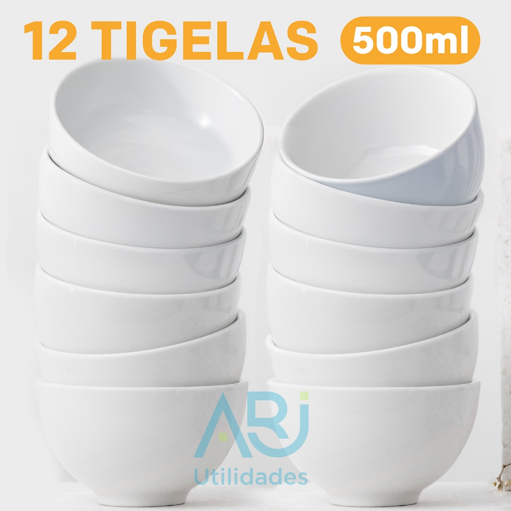 Tigelas 500ml Kit 10 e 12 de Porcelana Premium Chinesa Pote Bowl Cumbuca Sopa Caldo Sorvete Açaí