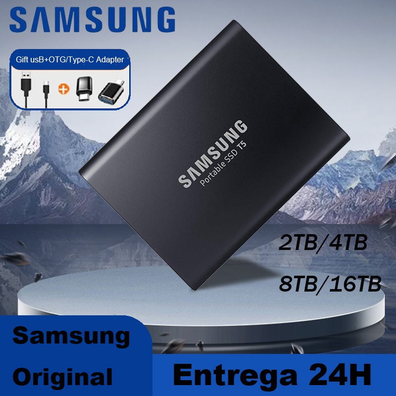 Disco Rígido Externo Samsung T5 SSD 16TB/8TB/4TB Adaptador USB 3.1 Tipo C 1TB/2TB/500GB HD