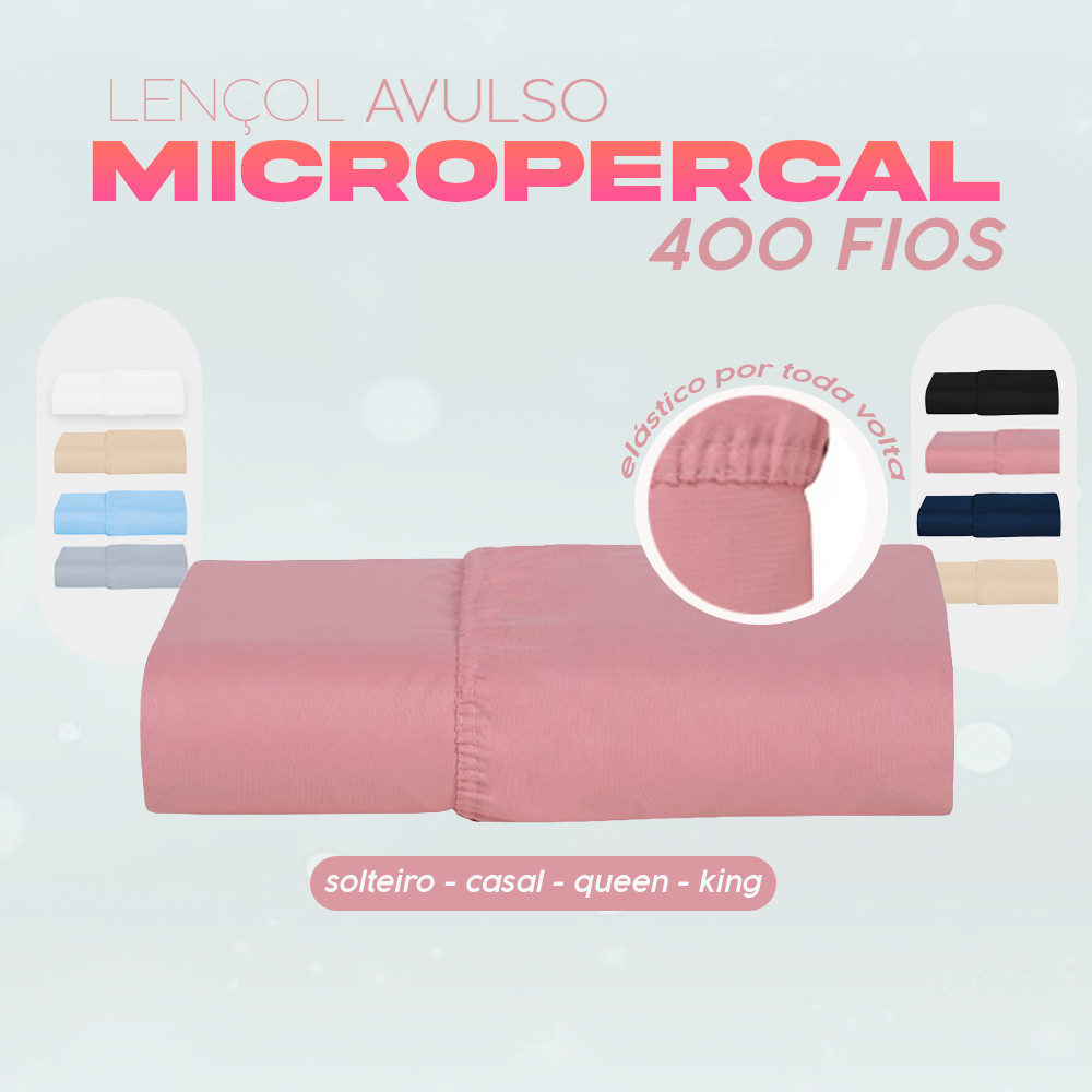 Lençol com Elástico Avulso - 400 fios Micropercal Liso - Solteiro / Casal / Queen / King - Toque Macio