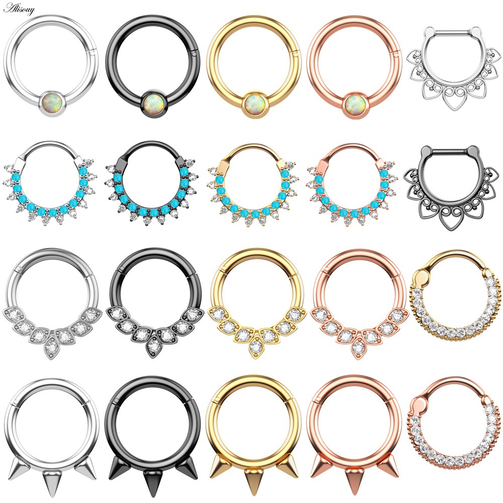 1 Pc Opala38 Cluster Orelha Tragus Helix Cartilagem Piercing Aço Cirúrgico Opala Nariz Anel Septo Clicker Daith Brinco Labret