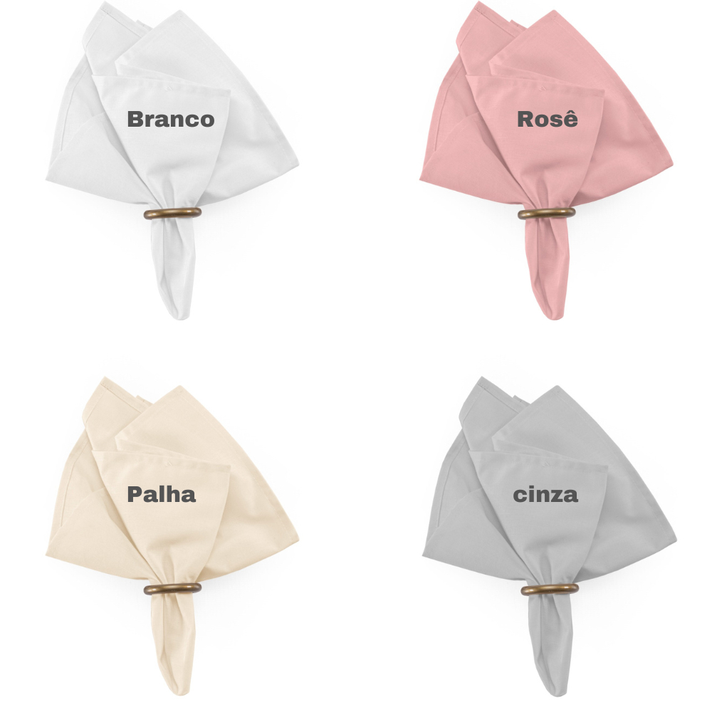 Kit 4 Guardanapos De Tecido Algodão 32 x 32 cm + 4 Argolas - Com Bainha - Mesa Posta