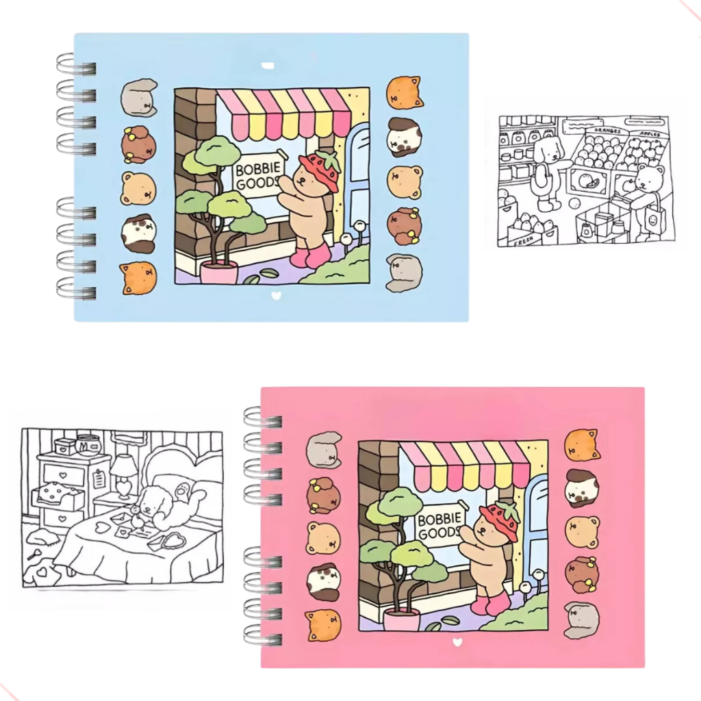 Livro de Colorir Bobbie Goods Personalizado 174 Folhas Capa Rosa Azul A5 Coloring Book Desenho Fofo