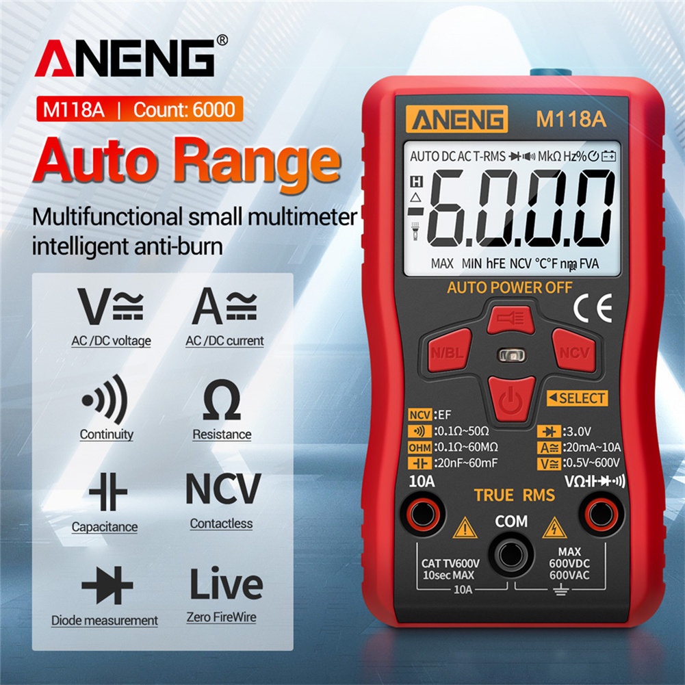 ANENG M118A Mini Multímetro Digital profesional Tester Auto Voltímetro Verdadeiro Rms Medidor Tranistor Com Suporte De Dados NCV 6000 Conta PK ST180