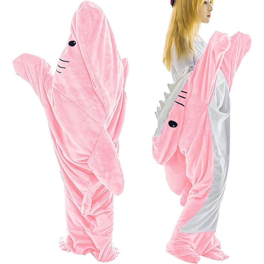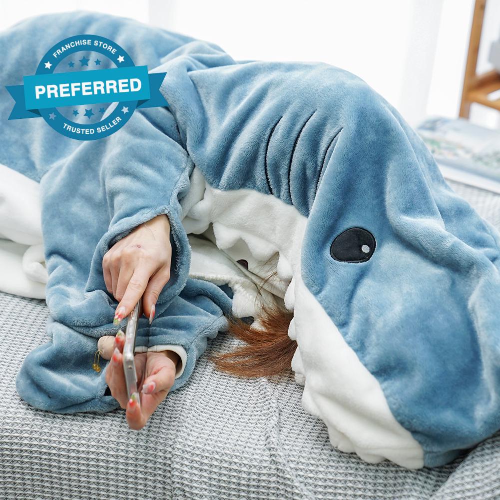 Manta De Tubarão Bonita Flanela De Capuz Vestível Saco Quente Pijama De Macia J3Z7