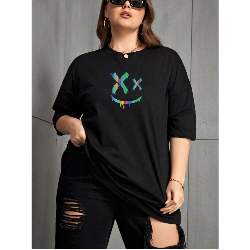 Camiseta T Shirt Estampa Smile X Apenas Multicolorido Bicolor Oversized Streetwear Life Style Stilo Rua Blusa Plus Size Ombro Caido Unissex