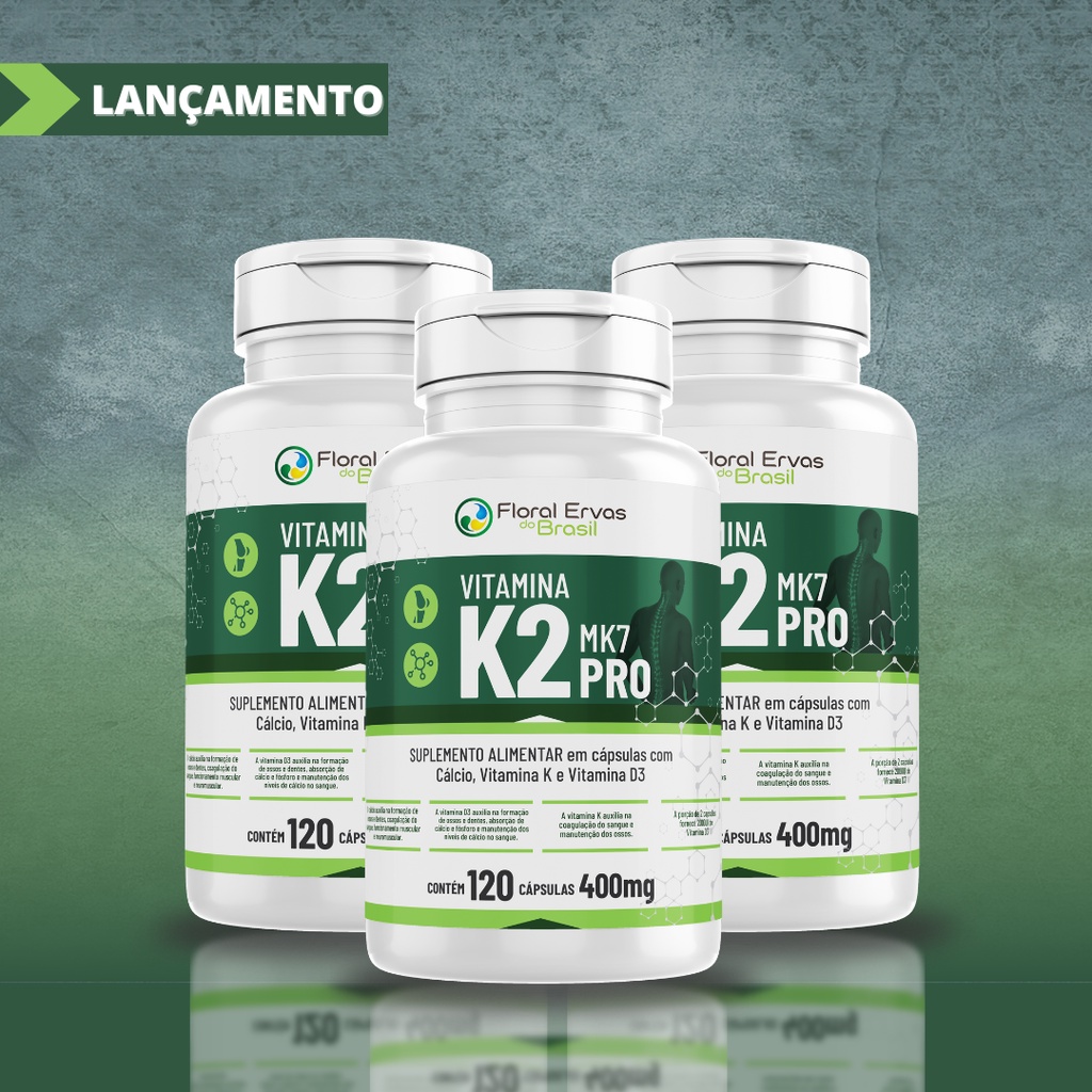KIT Vitamina K2 Mk7 PRO 400mg 120 Cápsulas + Cálcio + Vitamina D3 Menaquinona-7 - Acompanha Laudo Técnico