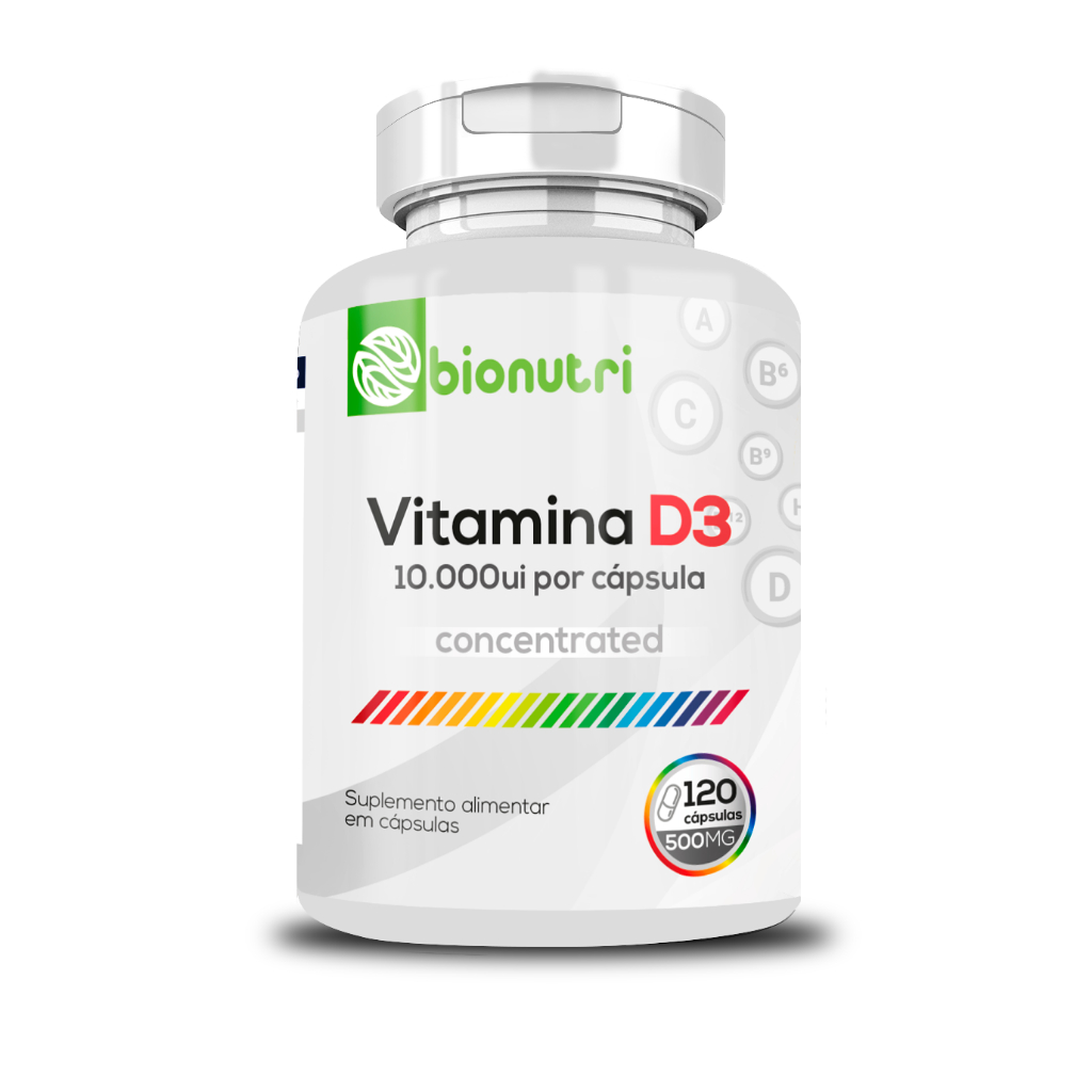 Vitamina D3 10.000ui 120 Cápsulas 500mg - Bionutri Original