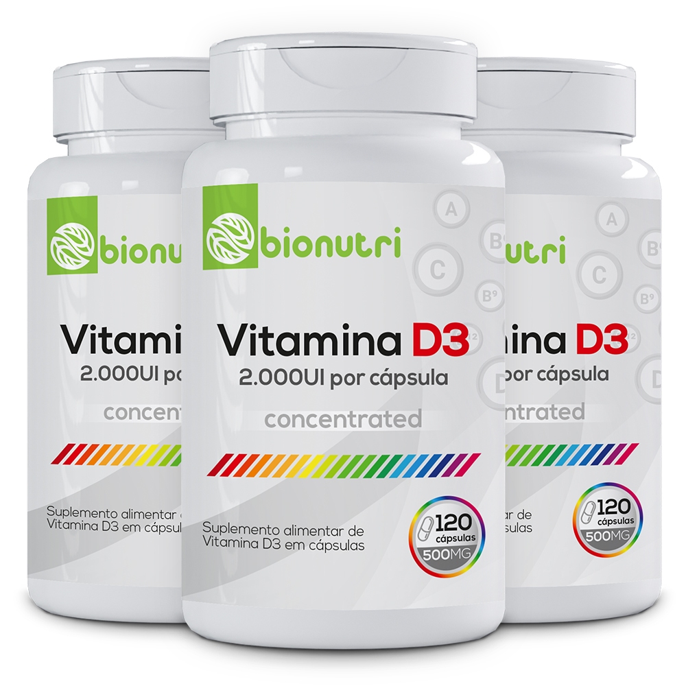 Kit 3x Vitamina D3 2.000UI Concentrado 120 Capsulas - Bionutri