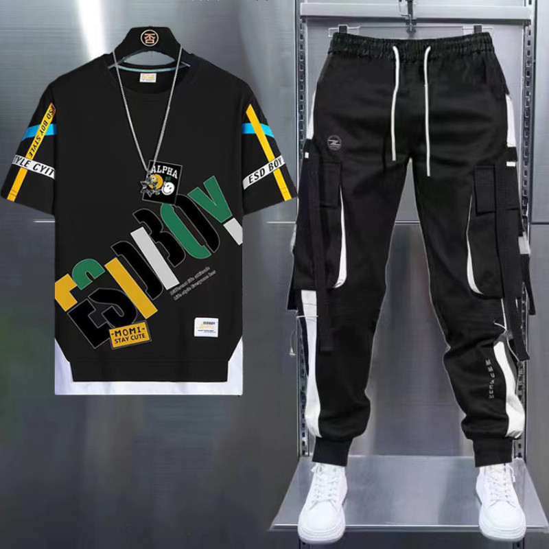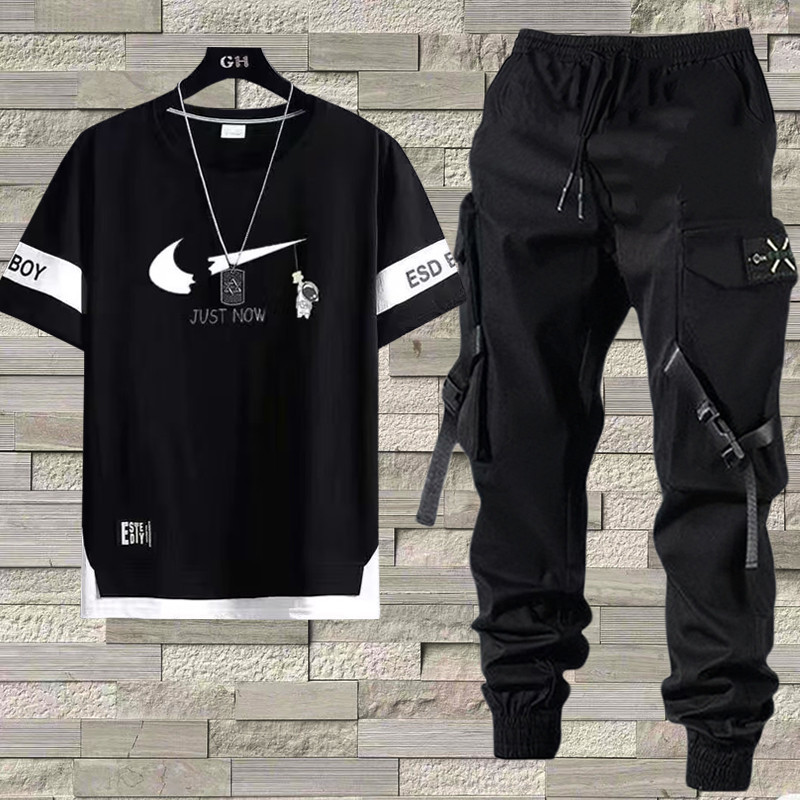 Conjuntos De Moda Masculina Com Camisetas Casuais Manga Curta + Hip Hop Calças De Carga Joggers