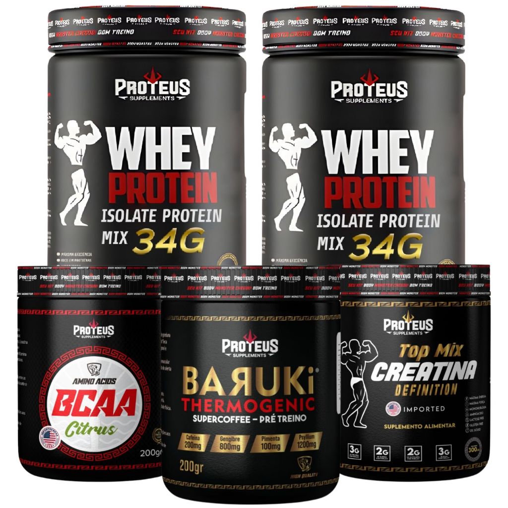Kit Bodybuilder - Whey Protein IsoMix 34g + Creatina TopMix 300g + Termo Pre Treino 200g + BCAA 200g