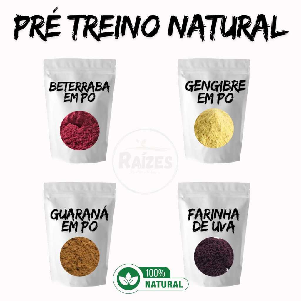 Kit Pré Treino Natural Beterraba, Uva, Guaraná e Gengibre