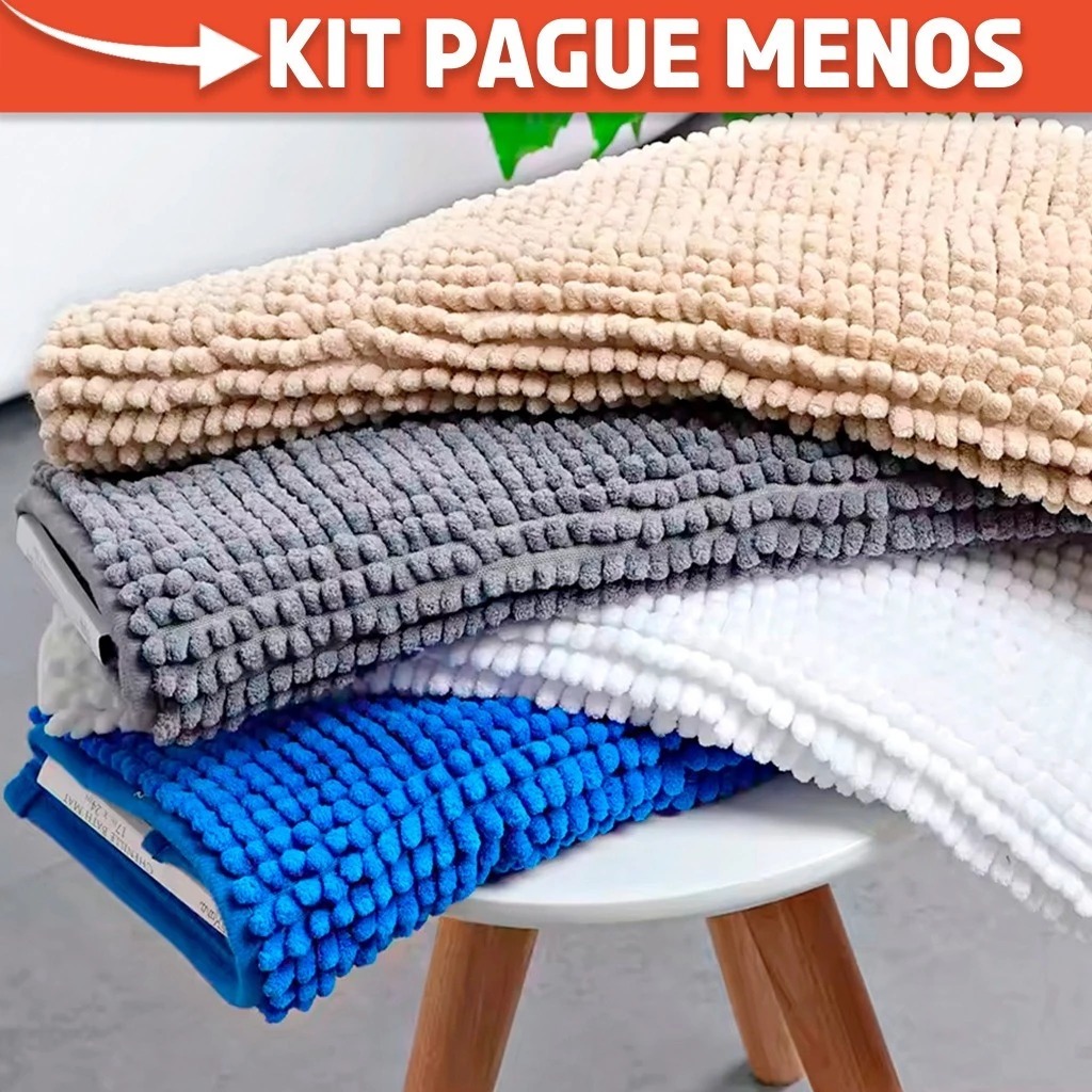 Tapete Banheiro Antiderrapante Bolinha Microfibra Macarrão Luxo - KIT 2 UNIDADES