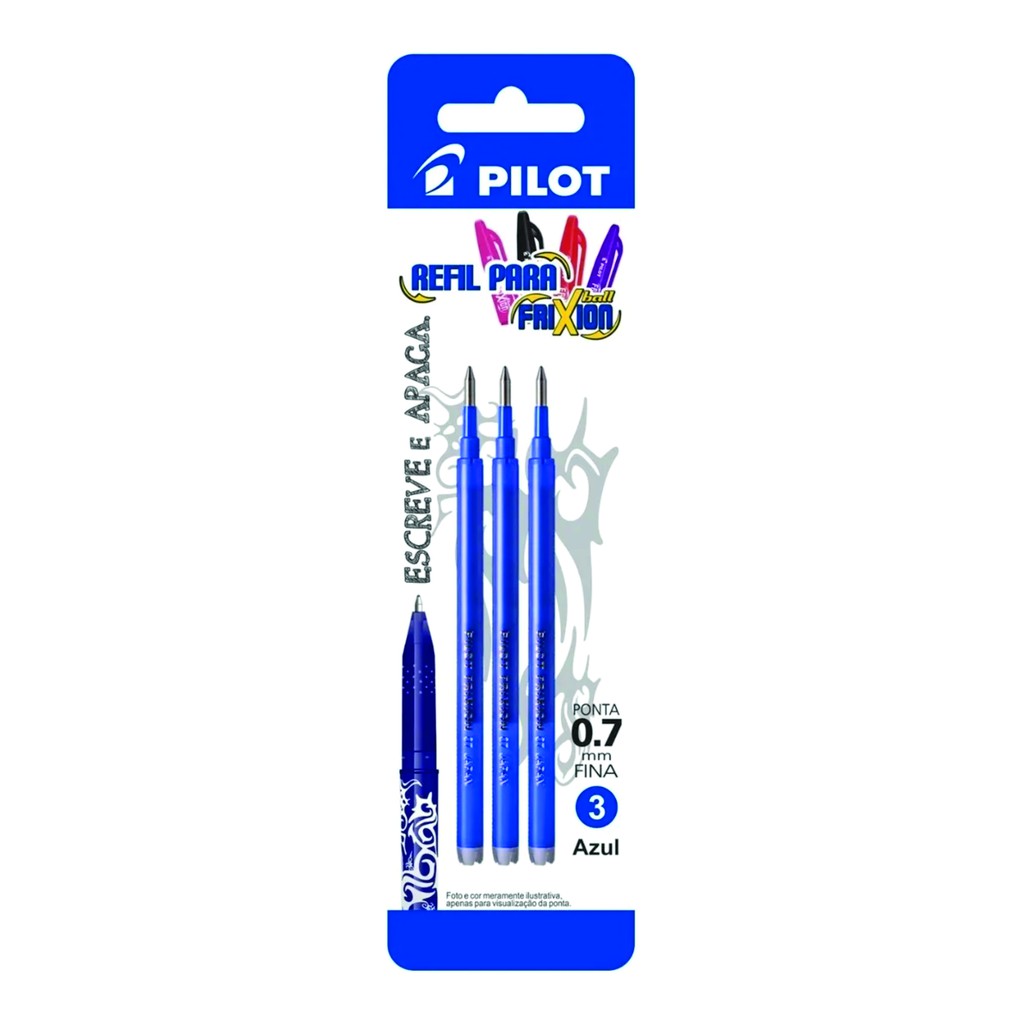 Refil Caneta Pilot Frixion Ball Apaga Com Calor Azul 3unid