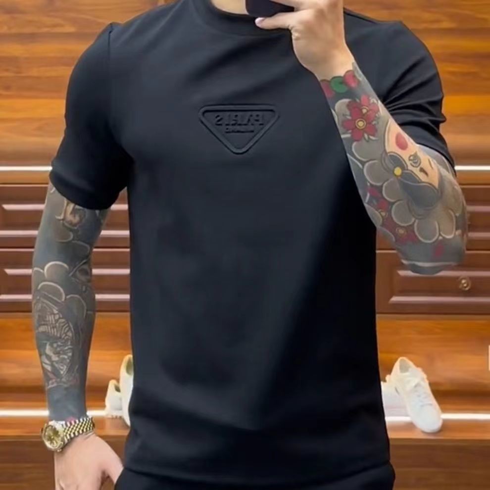 Novo estilo masculino High-End sentimento Bottoming manga curta camiseta moda masculina