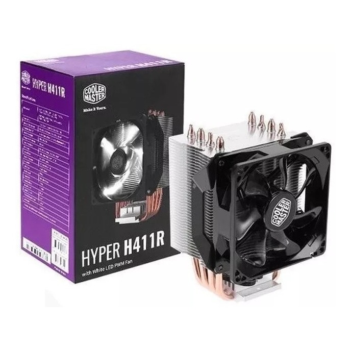 Cooler Master Hyper H411r Led Branco 4 Heatípes Cobre P/ Processador Intel Cpu Lga 2011-V3 2011 - Intel® LGA 2066 / 1151 / 1150 / 1155 / 1156 / 1366 / 775 e AMD RYZEN AM4 / AM3+ / AM3 / AM2+ / AM2 / FM2+ / FM2 / FM1