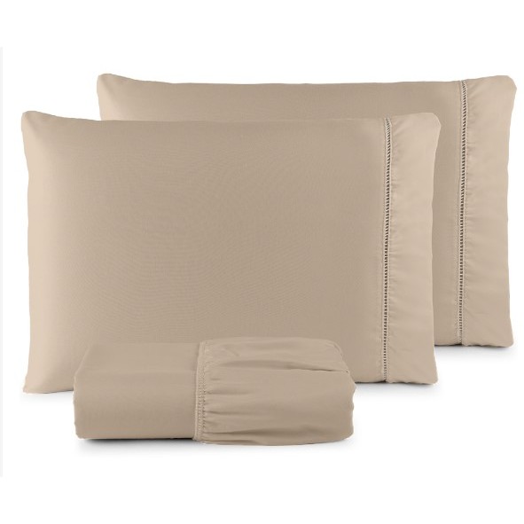 Jogo de Cama Lençol Queen 400 fios Casal Padrão Liso 3 Peças detalhe Ponto Palito Micropercal