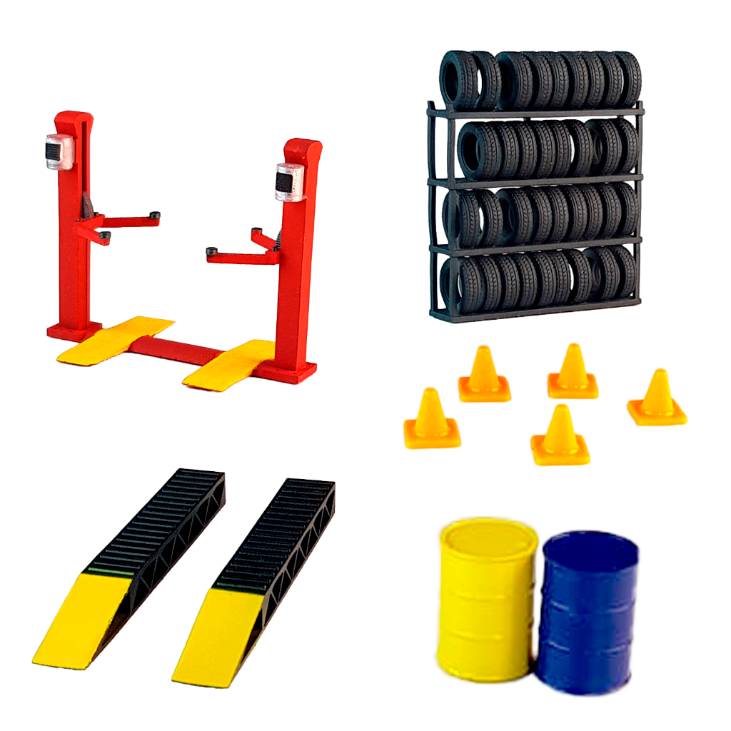 Peças para Diorama de Oficina e Garagem padrão Hot Wheels Escala 1:64, Impressão 3D em Resina pintado a mão.