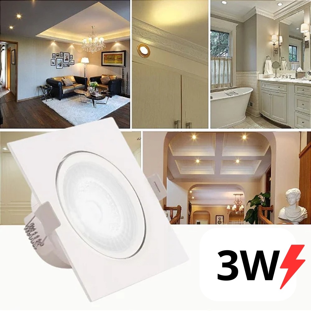 Kit 5 Spot LED 3W Direcionável em Alumínio Embutir Quadrado Branco Quente Teto Forro Luz Decorativa