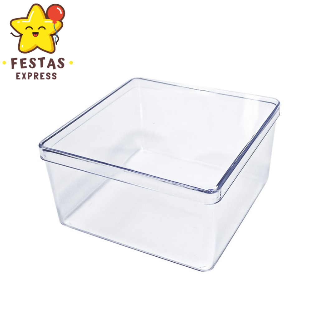Caixa Acrílica Organizadora Multiuso Transparente 15cmx15cm - 1,5 Litros com Tampa CakeBox - Lembrancinhas- Uso Geral