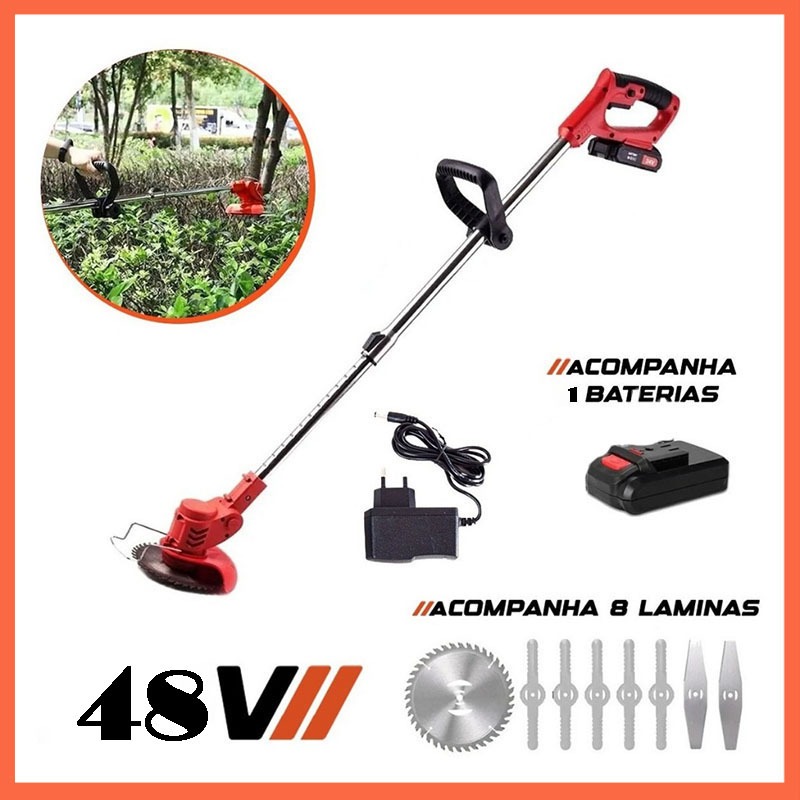 Aparador cortador de Grama a Bateria Roçadeira Elétrica 48V 1 Bateria Recarregável