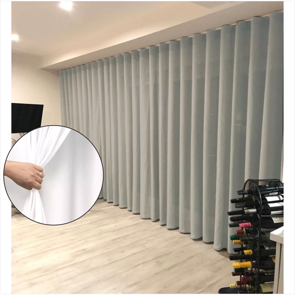 Cortina Trilho Suíço Duplo Gaze de Linho com Blackout 100% Vedação em tecido Luxo
