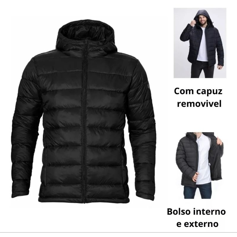 Jaqueta Puffer Bobojaco Masculina Casaco Corta Vento Acolchoada Impermeável Bolsos Capuz Removível