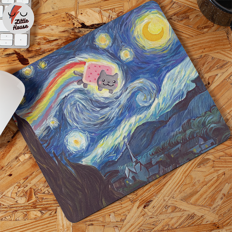 Mouse pad Engraçado Fofo Gatinho Gato Meme Nyan Cat Van Gogh decoração home office mousepad