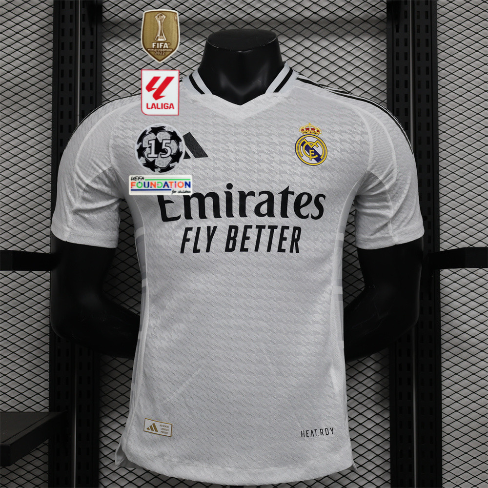 Camisa de Futebol 24 /25 RM de Alta Qualidade Versão Jogador Camiseta de Manga Curta Branca para Homens I