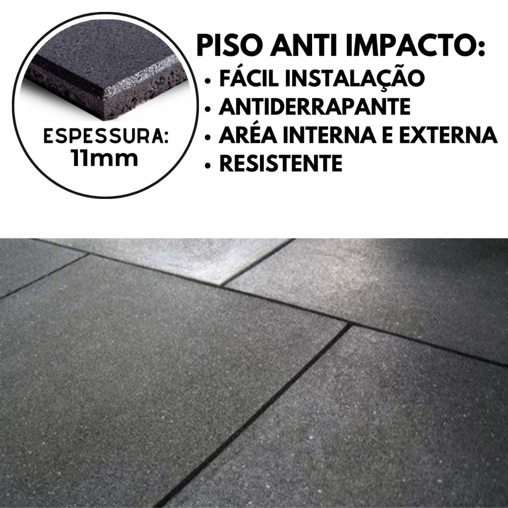 Kit 12 Piso De Borracha Preto 11mm Academia Crossfit Playground Anti Impacto (12 unidades)