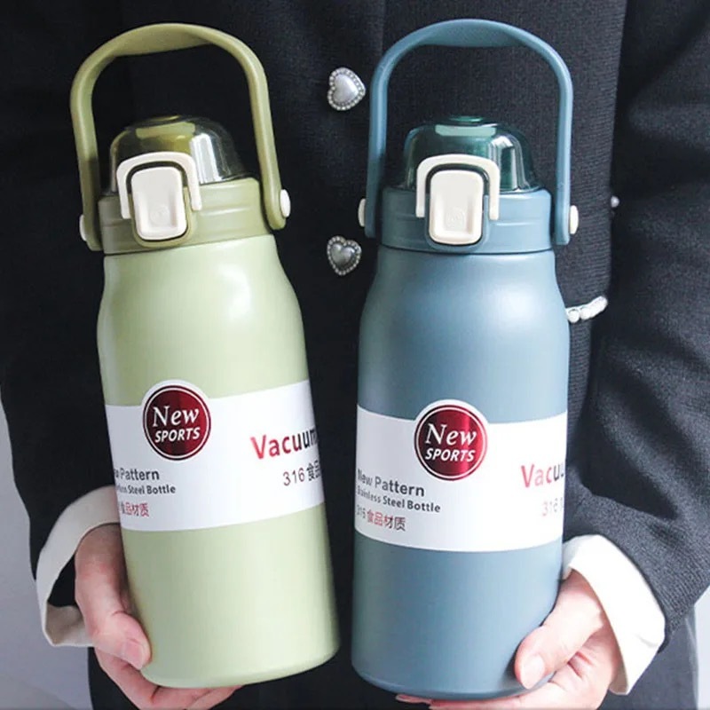 Garrafa Térmica Grande em Aço Inox com Canudo Alça e Trava Parede Dupla 1200ML ou 1,2L Esportes Academia