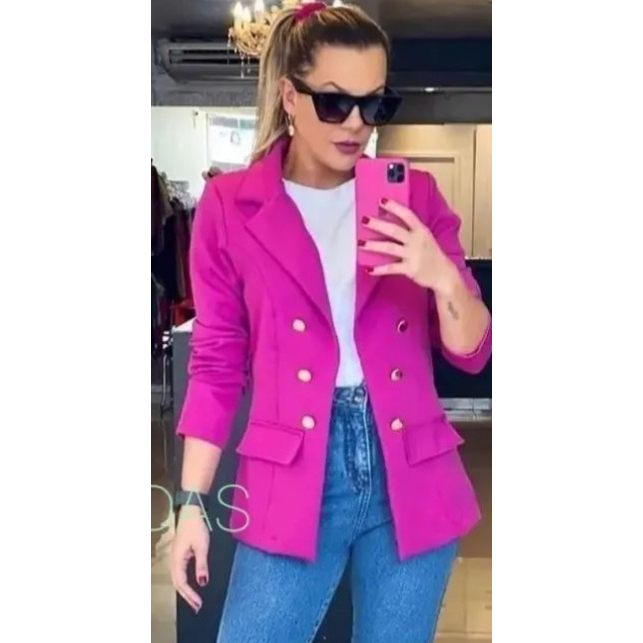 Blazer Casaquinho Feminino Alfaiataria Casaco Social Com Botão Lindo Super Envio Dia das Mães