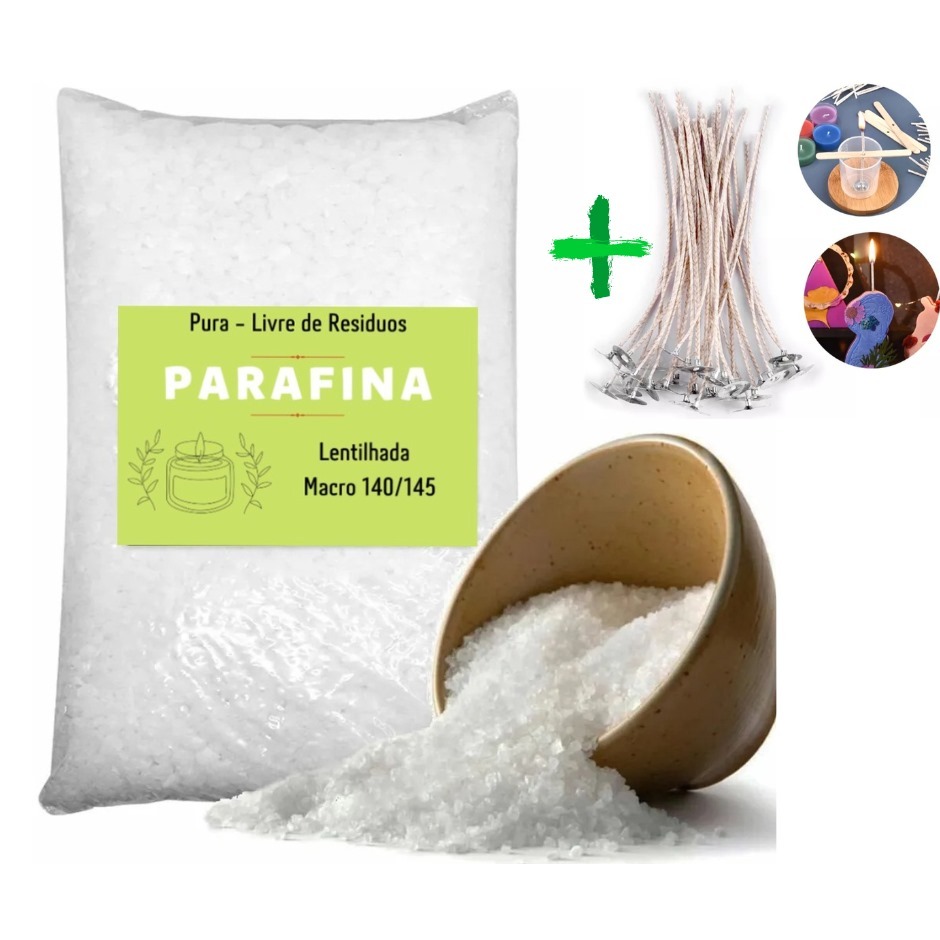 Kit Parafina Pura Lentilhada + 50 Pavios 10cm para Velas