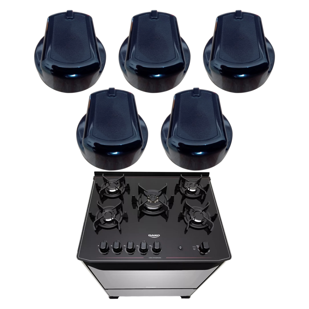 Kit Botões Manipulos Para Fogão Dako Supreme Glass 5 Bocas Mesa De Vidro