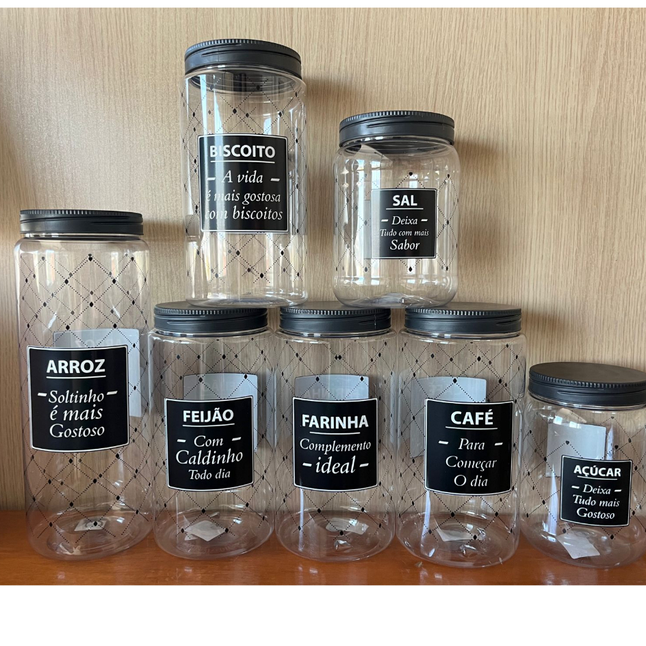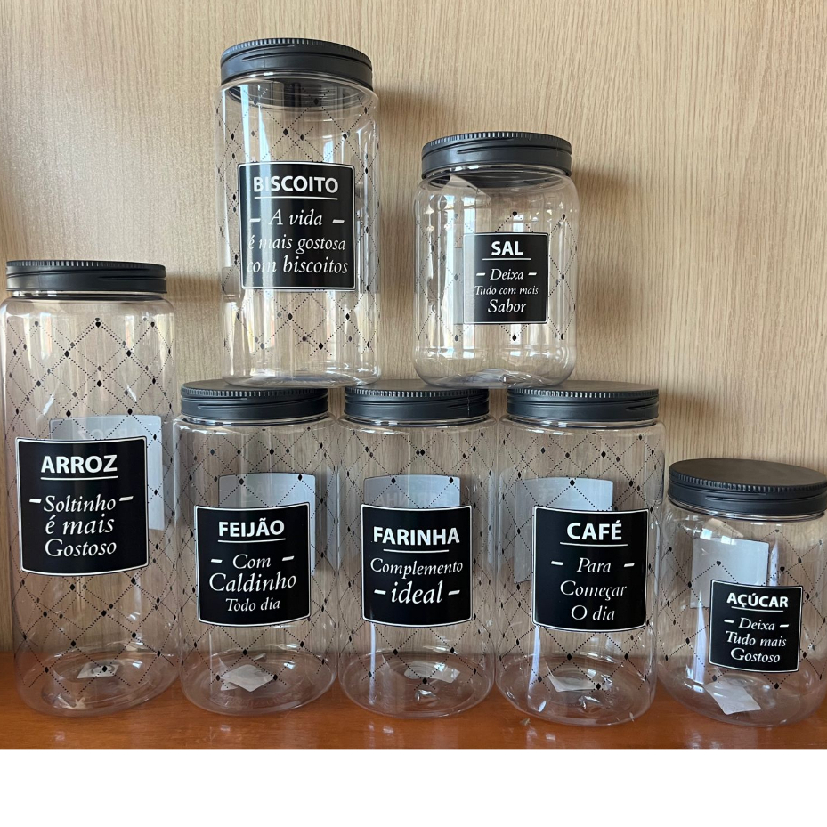[KIT] 7 (SETE) POTES DE MANTIMENTO - ARROZ, FEIJÃO, AÇUCAR, FARINHA, CAFÉ, BISCOITO, SAL