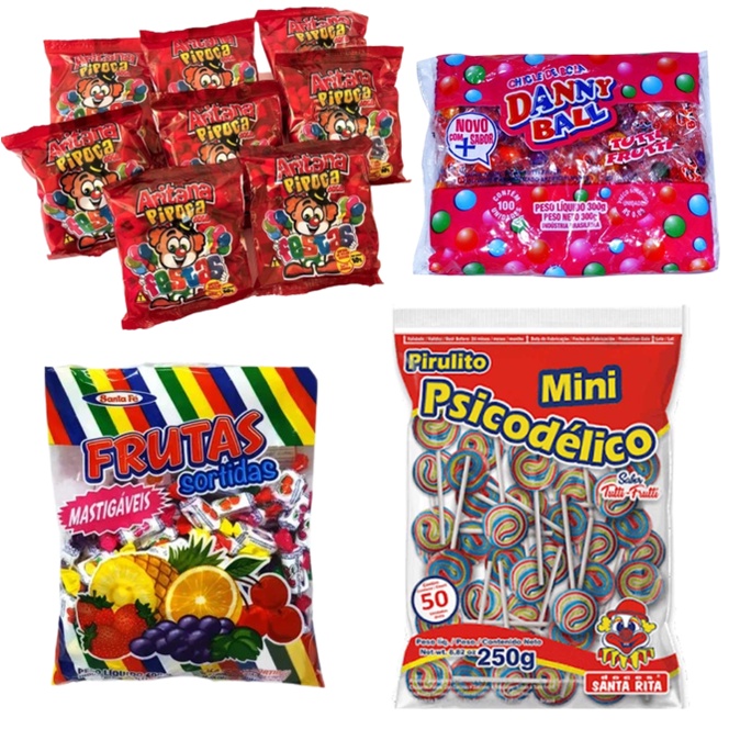 Kit 100 Doces de Festa Lembrancinha Aniversário Guloseimas Sacolinha Surpresa Pacote de Doces