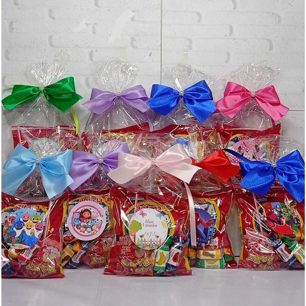 Kit aniversario infantil 30 sacolinha surpresa doces guloseimas festa